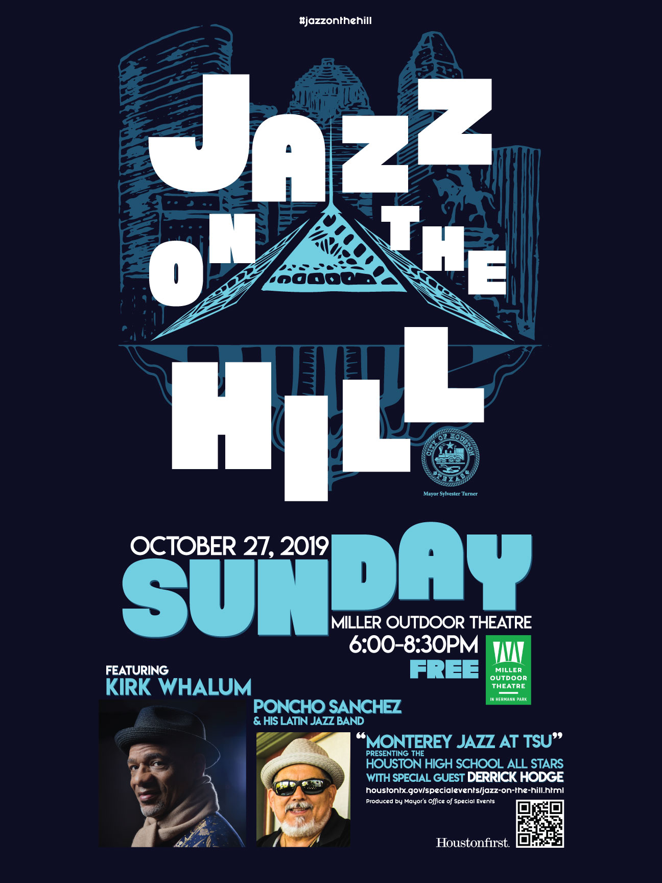 Mayor Sylvester Turner will host the inaugural Jazz on the Hill concert at Miller Outdoor Theatre in Hermann Park this weekend, Sunday, Oct. 27, 2019, featuring live performances by GRAMMY® Award winning saxophonist Kirk Whalum.